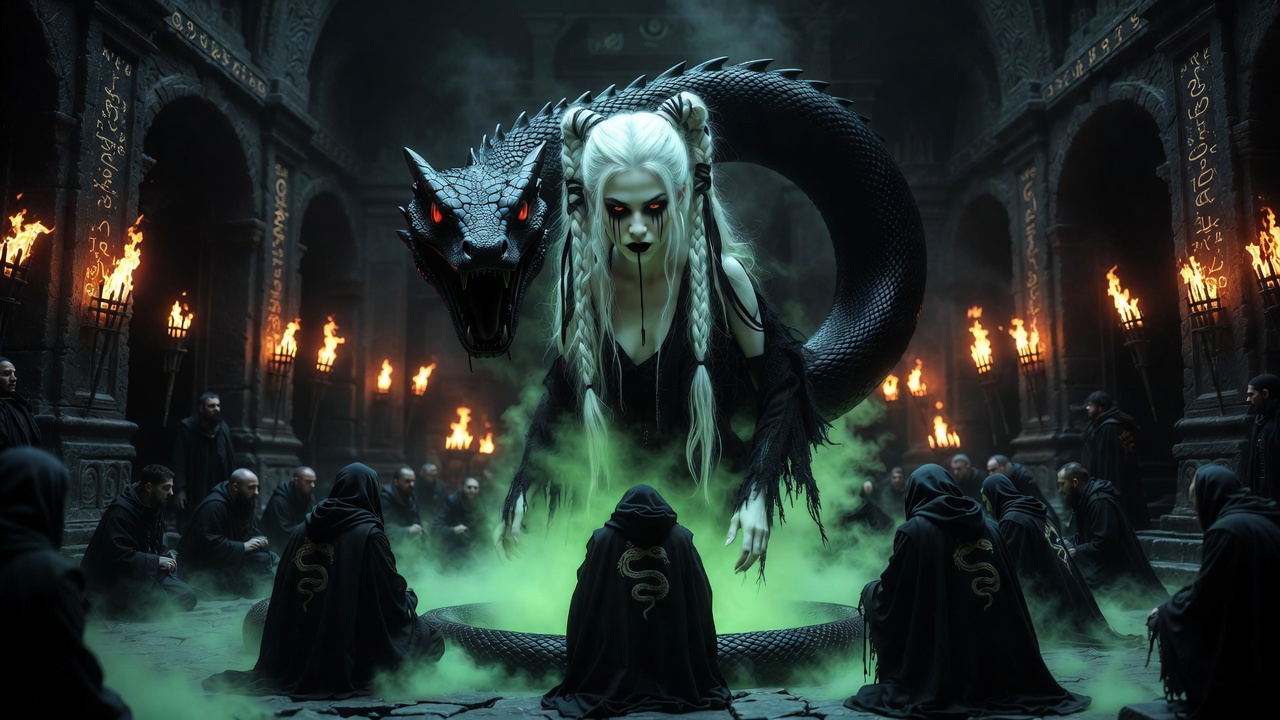 Torches dim for her. Stone remembers her. Shadows rise to greet their Queen.
